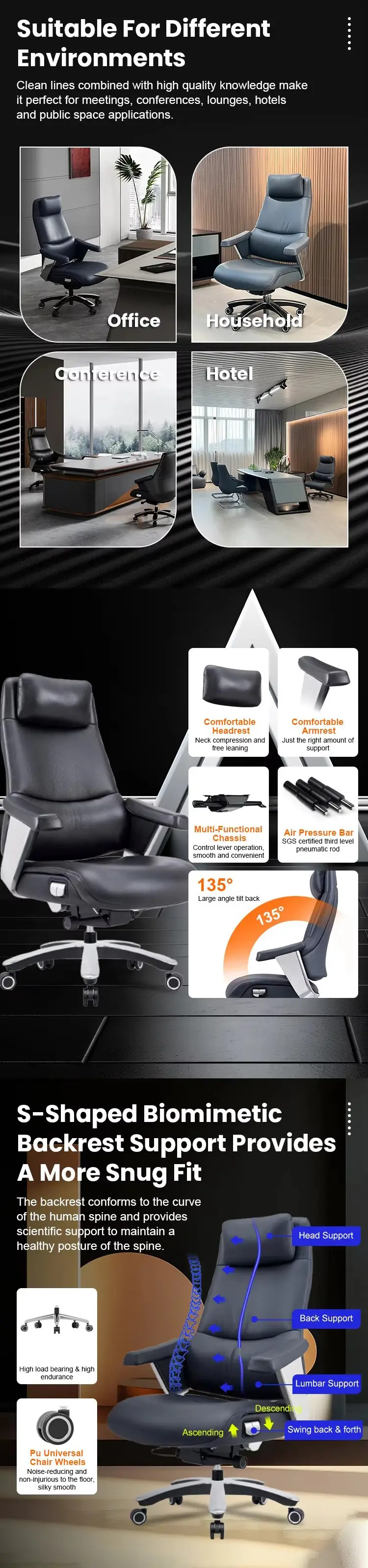 | product name | Office furniture high back Swivel ergonomic Luxury Genuine Leather Office Chair Executive Office Chairs for boss manager CEO |